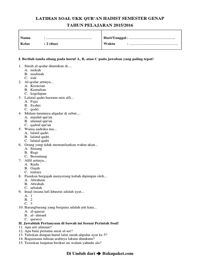 Artikel ini akan mengupas lebih dalam mengenai contoh-contoh soal Hadits yang biasa diberikan kepada santri Kelas 1 KMI Gontor. Melalui analisis contoh soal ini, kita dapat memahami bagaimana materi diajarkan, apa saja fokus pembelajarannya, dan bagaimana evaluasi dilakukan untuk mengukur pemahaman serta internalisasi ajaran hadits pada diri santri.